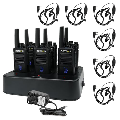 Retevis RT24 Walkie Talkies for Business, 6-Way USB Charger PMR446 License-Free Two Way Radios with VOX, 16 Channels, Long Range Radio Communication – Ideal for Security, Retail, School (6 Packs)
