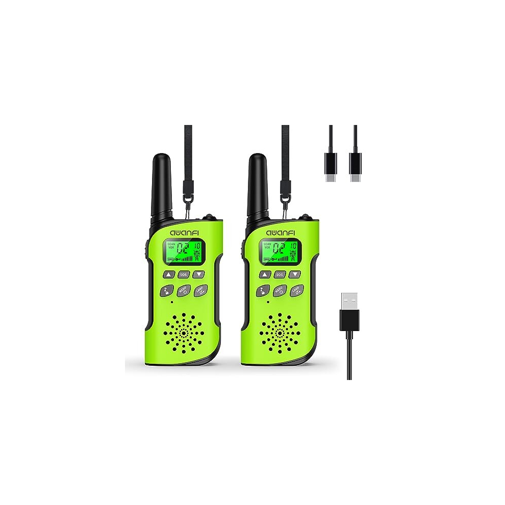 Walkie Talkie for Kids Adults Rechargeable 2 Pack, AWANFI 8 Channel Long Range Kids Walkie Talkies with Flashlight, USB C Walkie Talkie for Camping,