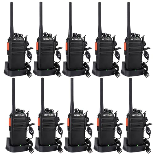 Retevis RT24 Walkie Talkies for Adults, Professional Two Way Radio, PMR446 Long Range License Free, 2 Way Radios Walkie Talkie with Earpieces for Commercial, School (Black,10 Pack)