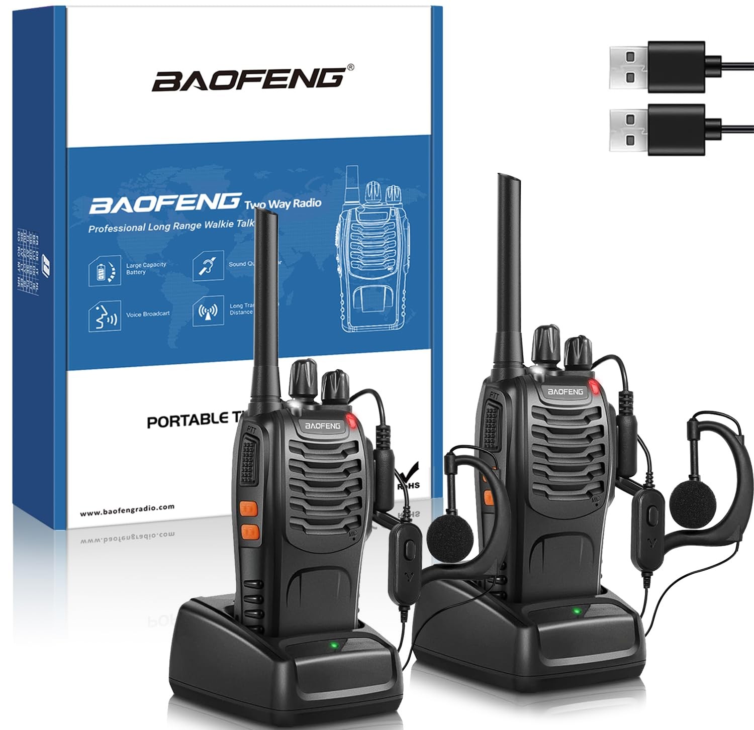 Long Range Rechargeable Walkie Talkies 2 Way Radios with Earpieces Flashlight