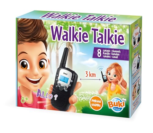 Buki France Walkie Talkies for Kids or Adults. 3km Long Range, Integrated Torch. 8 Channels Hands-Free Mode for Camping, Indoor & Outdoor. Pair of Walkie Talkie Radios. Toy Gifts for Boys & Girls 8+