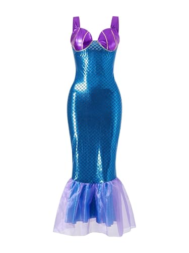 UPPJPBSW Halloween Mermaid Costume, Women's Role-playing Mermaid Dress, Long Skirt Sequin Party Outfit(A-blue Purple,L)