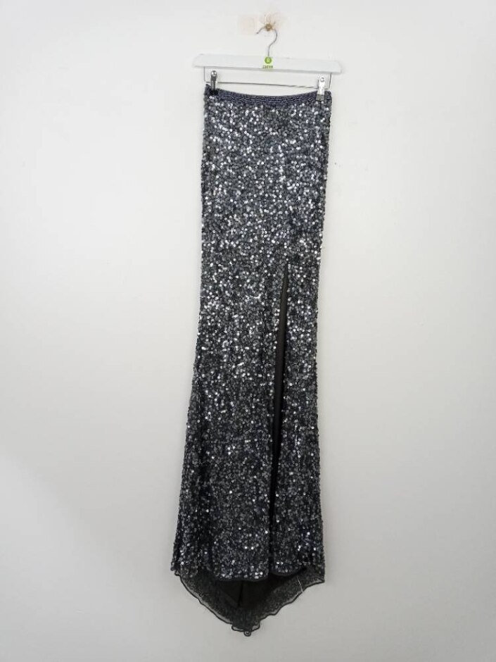 Primavera Size 2 Long Sequin Covered Skirt Grey Size: Xs