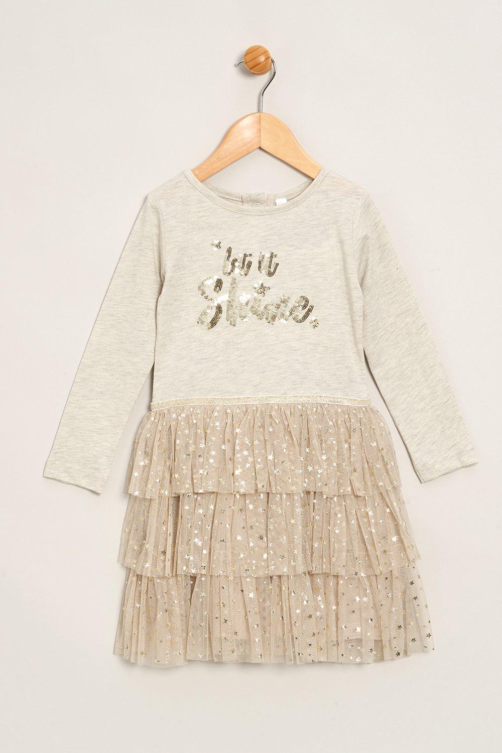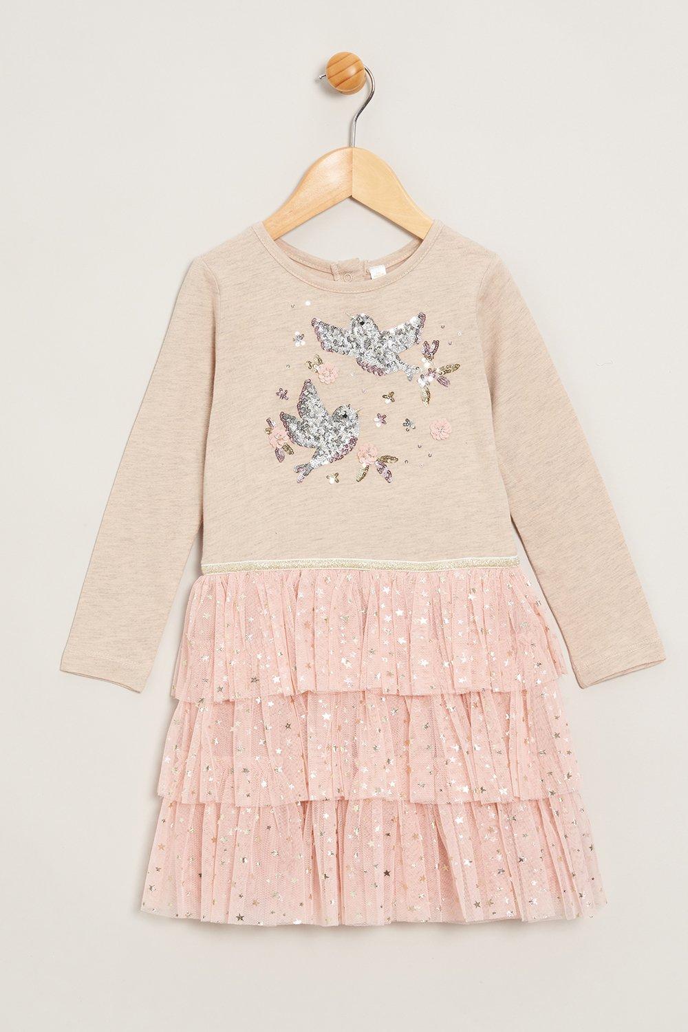Long Sleeved Tutu Skirt Dress with Sequin Detail