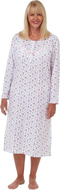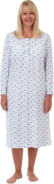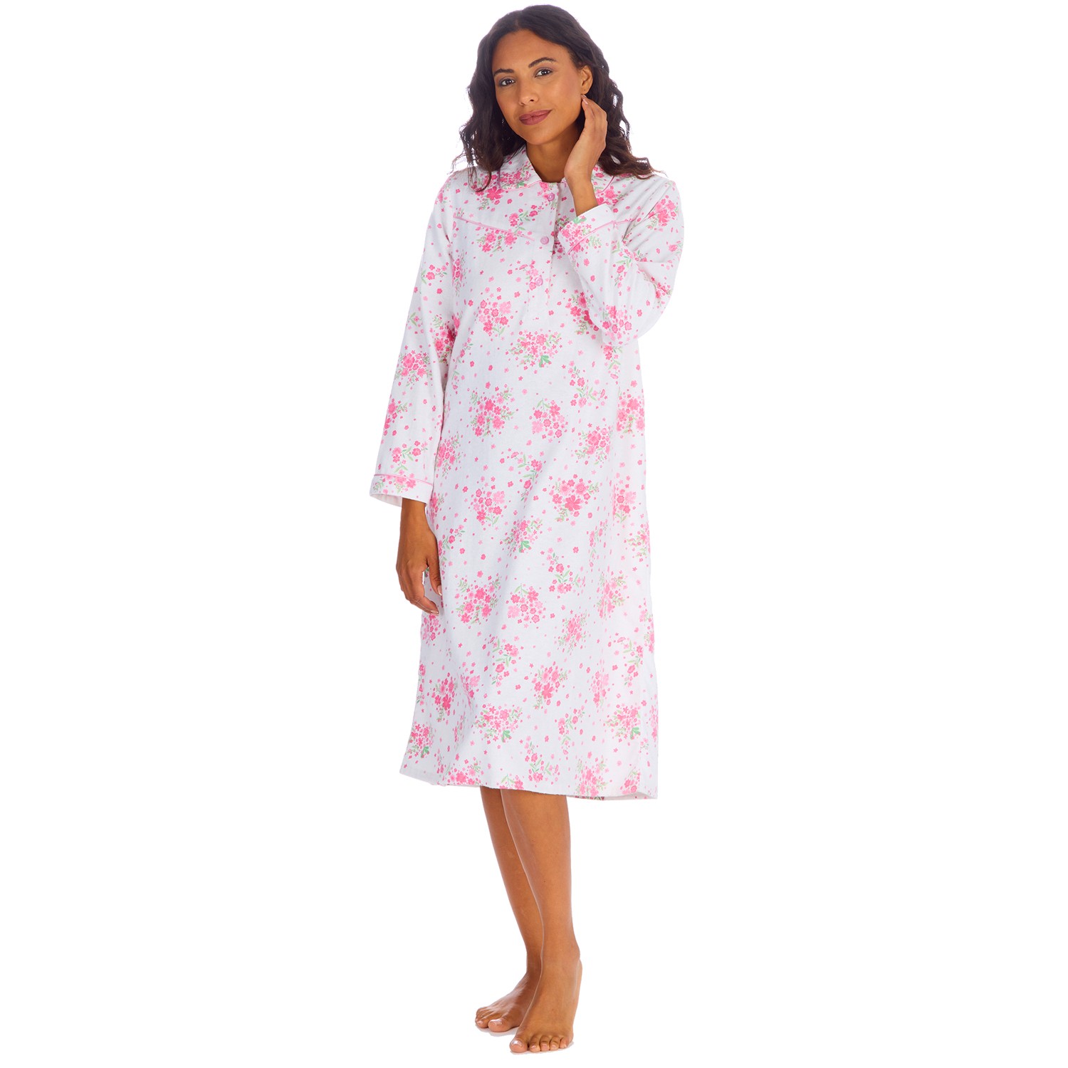 Ladies Nightdress Long Sleeve Cotton Or Fleece Nightwear Nighty Nightie Chemise