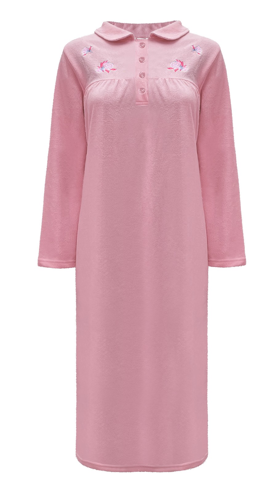 i-Smalls Ladies Thermal Fleece Nightdress Super Soft Long Sleeve Floral Nightie (M) Pink