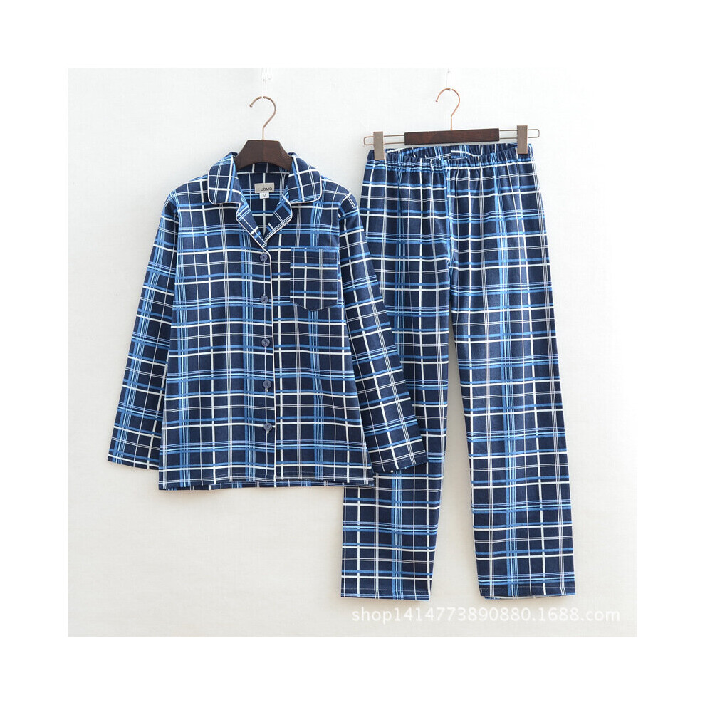 Men's Pure Cotton Wool Cloth Nightie Mens Sexy Pajamas Sleepwear Long Sleeve Pajama Set Plaid Trousers Men Clothing