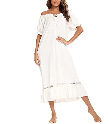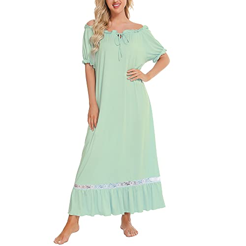 Dreamskull Women Vintage Nightdresses Short Sleeve Lace Nightgown Long Sleep Dress Modal Nightie Lounge Dresses