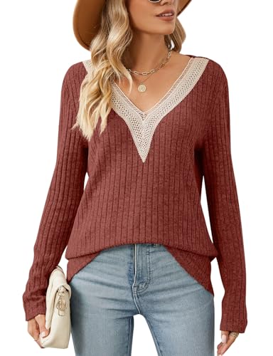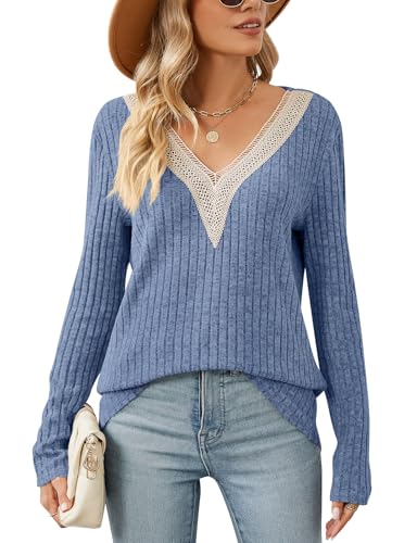 Flikity Womens Casual V Neck Blouses Long Sleeve Tunic Tops Ladies Lightweight Jumpers Size 14 Pullover Sweaters Going Out Fall Tops Winter Tunics to Wear with Leggings