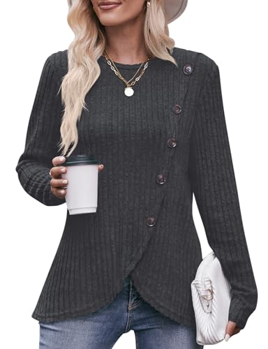 Flikity Jumpers for Women UK, Casual Crew Neck Tops Long Sleeve Top Ladies Jumpers Sweaters to Wear with Leggings Womens Autumn Clothes Sweatshirts XL Black-Grey
