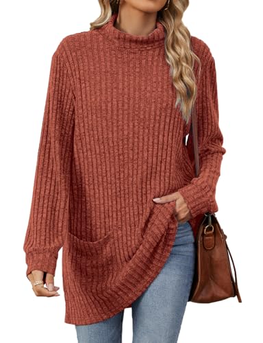 Flikity Winter Jumpers for Women UK, Ladies Turtle Neck Tops Long Sleeve Top Lightweight Sweaters to Wear with Leggings Womens Longline Tops Knitted Jumpers S