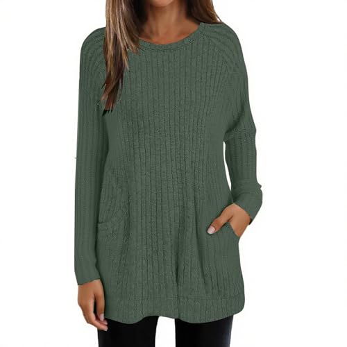 Long Tunic Tops for Women Uk,Jumpers for Women Uk Lightweight With Pocket Long Sleeve Tops Casual Round Neck Tunic Top Long Tops To Wear With Leggings Ladies Knit Jumper Sweater Green L