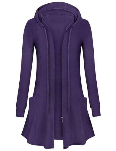 Flikity Purple Cardigans for Women, Zipper up Knee Length Hooded Cardigan with Pockets Long Tunic Tops to Wear with Leggings Casual Office Work Blouses Solid Color Loose Flowy Fit M