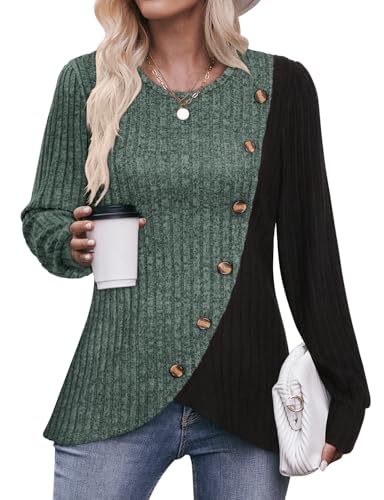 iChunhua Womens Long Tops to Wear with Leggings Baggy Sweatshirt Plus Size Tunic Tops Green S