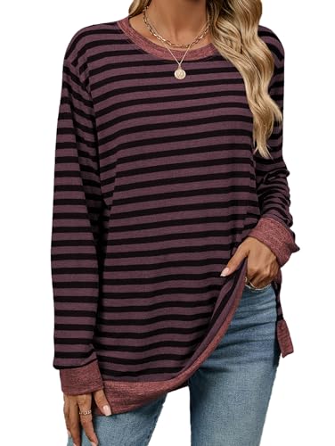 Odosalii Long Tops to Wear with Leggings Relaxed Round Neck Side Split Tunic Tops Business Simple Plain Christmas Valentine's Day Shirts Comfy Long Sleeves Work Office Jumpers Medium Burgundy