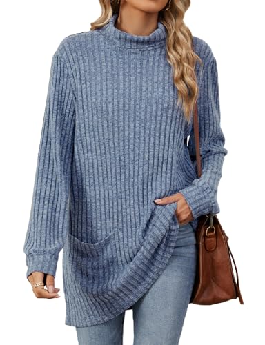 Flikity Jumpers for Women UK Plus Size, Turtleneck Jumper Womens Long Sleeve Tops Ladies Clothes Womens Tunic Tops to Wear with Leggings Sweaters for Women UK Blue XL