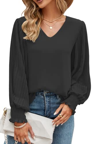 Gemulate Chiffon Tops for Women UK Black Long Sleeve Party Top Ladies Long Top to Wear with Leggings Going Out Tops for Women UK - Black, M