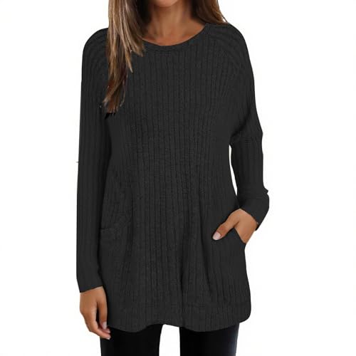 Plus Size Jumpers,Jumpers for Women Uk Lightweight With Pocket Long Sleeve Tops Casual Round Neck Tunic Top Long Tops To Wear With Leggings Ladies Knit Jumper Sweater Black 3Xl