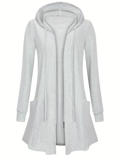 Flikity Cardigans for Women UK, Zip up Hoodies for Women UK Long Tops to Wear with Leggings Ladies Lightweight Jackets Hooded Cardigan Womens Autumn Work Clothes Grey L