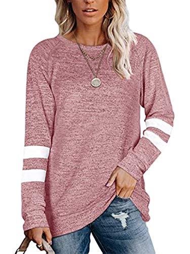 Famulily Color Block Pullover Jumper Ladies Long Tops to Wear with Leggings Pink M
