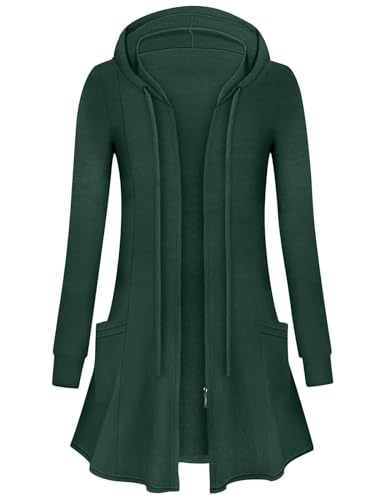 Flikity Ladies Hoodies, Zipper Cardigan Women Size 12-14 Spring Autumn Coat Long Tops to Wear with Leggings Ladies Casual Jackets Work Clothes Drawstring Women's Cardigans Army Green