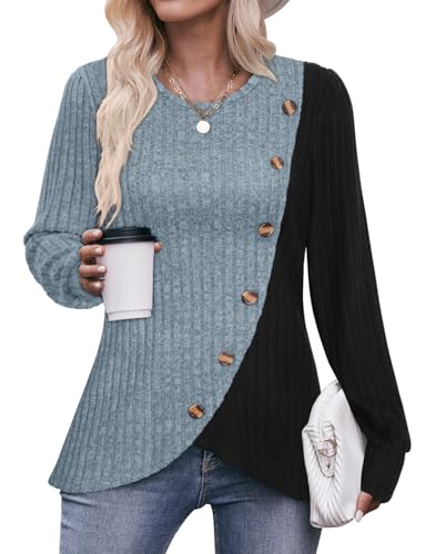 Flikity Ladies Jumpers UK, Long Sleeve Top Women Knitted Tunic Blouses Womens Tunic Tops to Wear with Leggings Crew Neck Jumper Ladies Eveing Going Out Tops Blue M