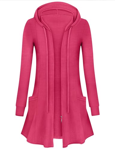 Flikity Long Hoodies for Women UK, Ladies Longline Zip Up Hoodies Womens Cardigans Size 12-14 Long Tops to Wear with Leggings Fashion Spring Fall Tops Winter Outwear M Pink