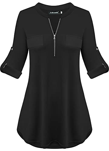 Gemulate Ladies Tops Black White Dot Shirt for Women Zip Up Plaid Tunic Blouse 3 Quarter Sleeve Shirt for Women Floral Printed Shirts Long Tops to Wear with Leggings - Black White Dot, L