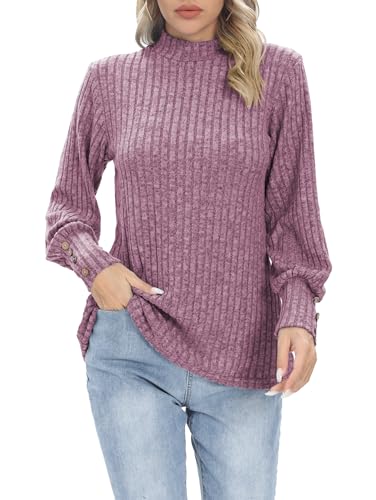 iChunhua Ladies Jumpers Mock Neck Casual Tops Thin Long Sweaters for Women to Wear with Leggings (Purple, Large)