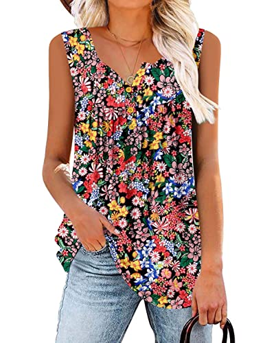 Syphiby Ladies Tops and Blouses Dressy, Women Blouses Elegant Casual Short Sleeve V Neck Tunic Shirt Summer Floral Pleated Mesh Layered Top Swing Long Shirts to Wear with Leggings, Black-XL