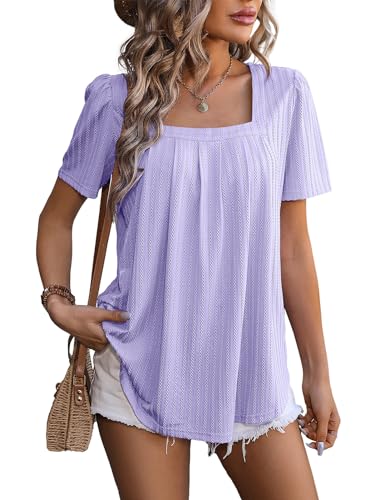Flikity Square Neck Tunic Top Short Sleeve for Women UK Casual Office Work Blouses Ladies Size 12-14 Going Out Long Tops to Wear with Leggings Purple