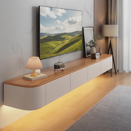 YINXSLO Floating TV Unit with Drawer – Pre-Assembled Wooden Wall Mounted TV Cabinet, Modern Floating Media Console for Living Room, Space-Saving TV Storage Unit (Wood+white (With Light),240cm/94.5in)