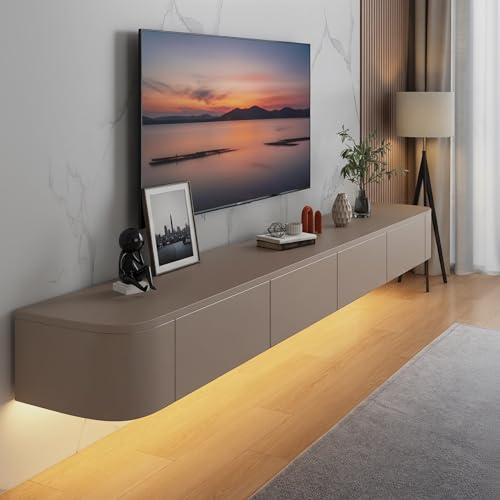 YINXSLO Floating TV Unit with Drawer – Pre-Assembled Wooden Wall Mounted TV Cabinet, Modern Floating Media Console for Living Room, Space-Saving TV Storage Unit (Khaki(With Light),300cm/118.1in)