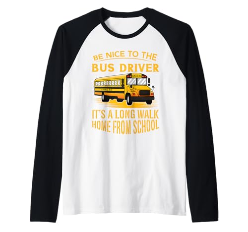Be Nice to A Bus Driver It's A Long Walk Home School Bus Raglan Baseball Tee