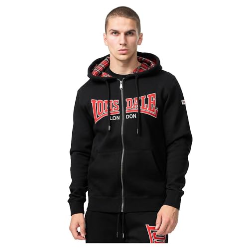 Lonsdale Men's Taransay Hoodie, Black/Red/Grey, S