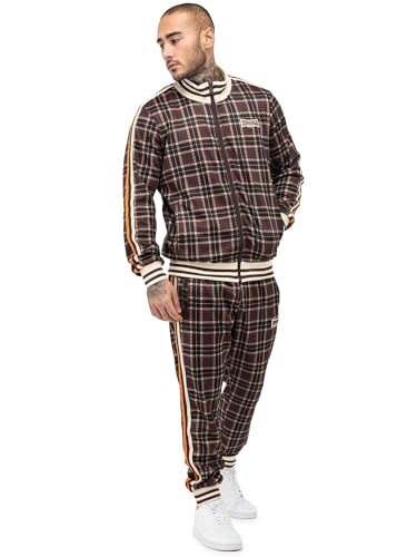 Lonsdale Men's Hedley Tracksuit, Brown/Ecru/Orange, XXXL