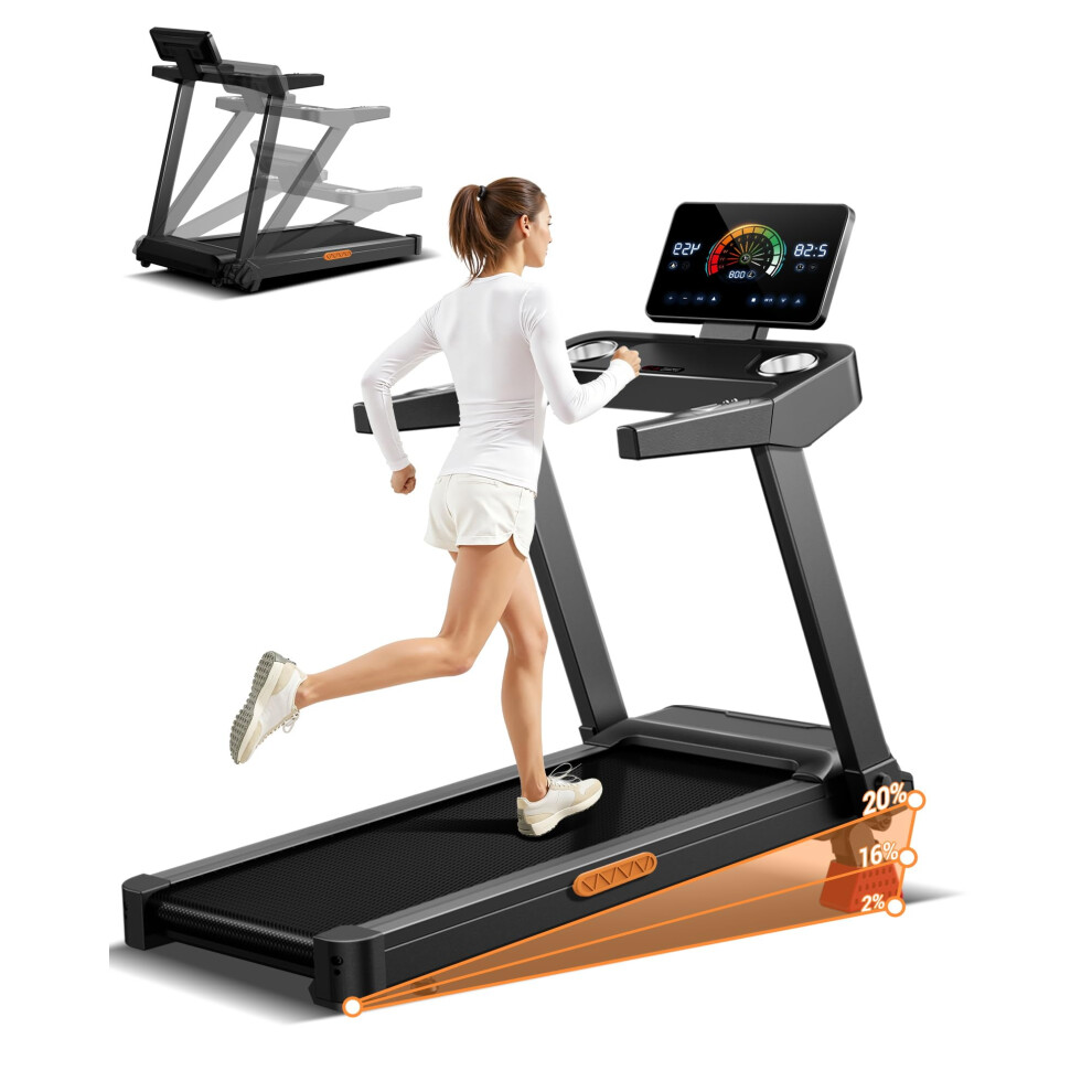 Foldable Treadmills for Home with 20% Auto Incline, 14KM/H Treadmill with Handles, Running Machine for Heavy People, 180KG Weight Capacity, Large Running Belt and Intelligent LED Touch Screen