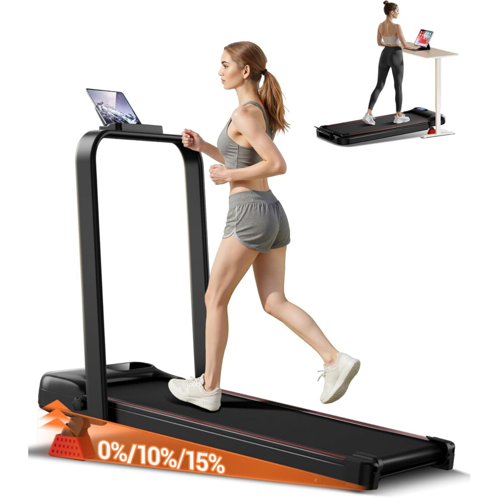 Folding Treadmill with 15% Incline, 4 in 1 Under Desk Walking Pad Foldable 8KM/H for Home Office, 2.5 HP Motor Portable Treadmill for Jogging/Running