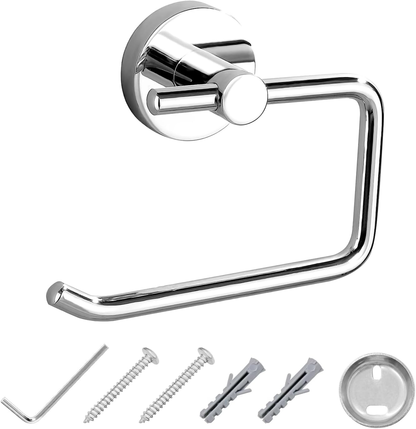Sayayo Chrome Toilet Roll Holder Wall Mounted Toilet Paper Holder SUS304 Stainless Steel for Bathroom Kitchen, Loo Tissue Roll Holder Round Base