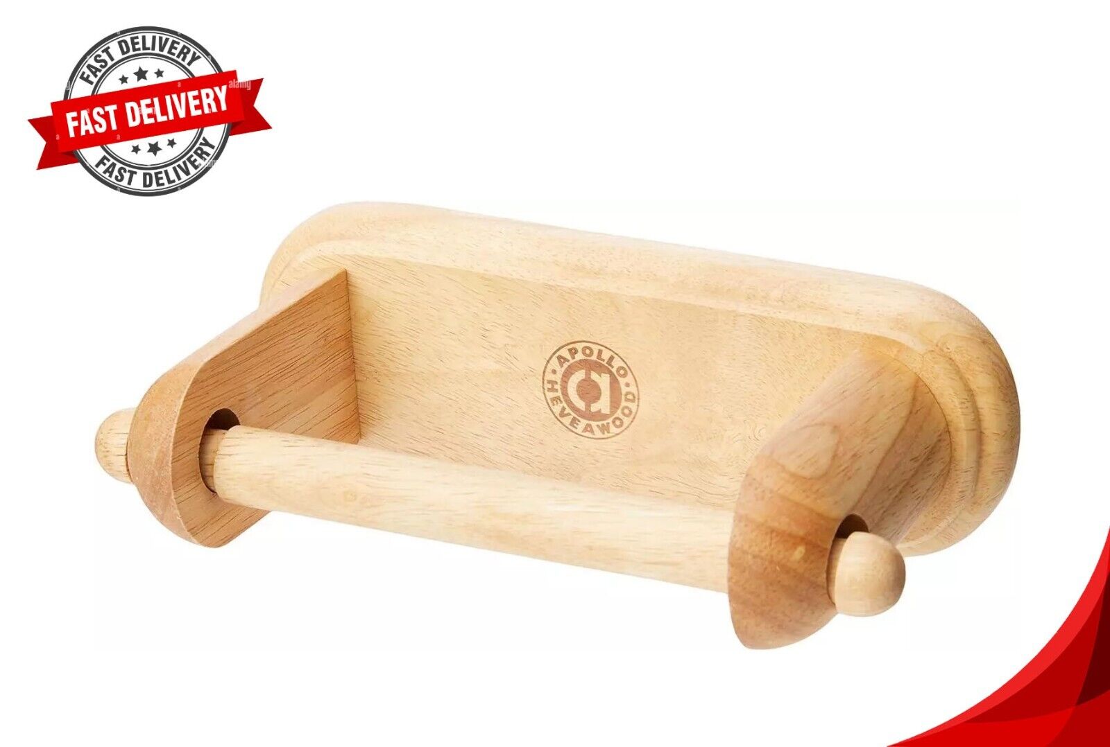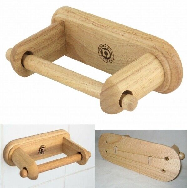 Hevea Wood Beech Toilet Loo Roll Paper Holder Wooden Bathroom Wall Mounted New