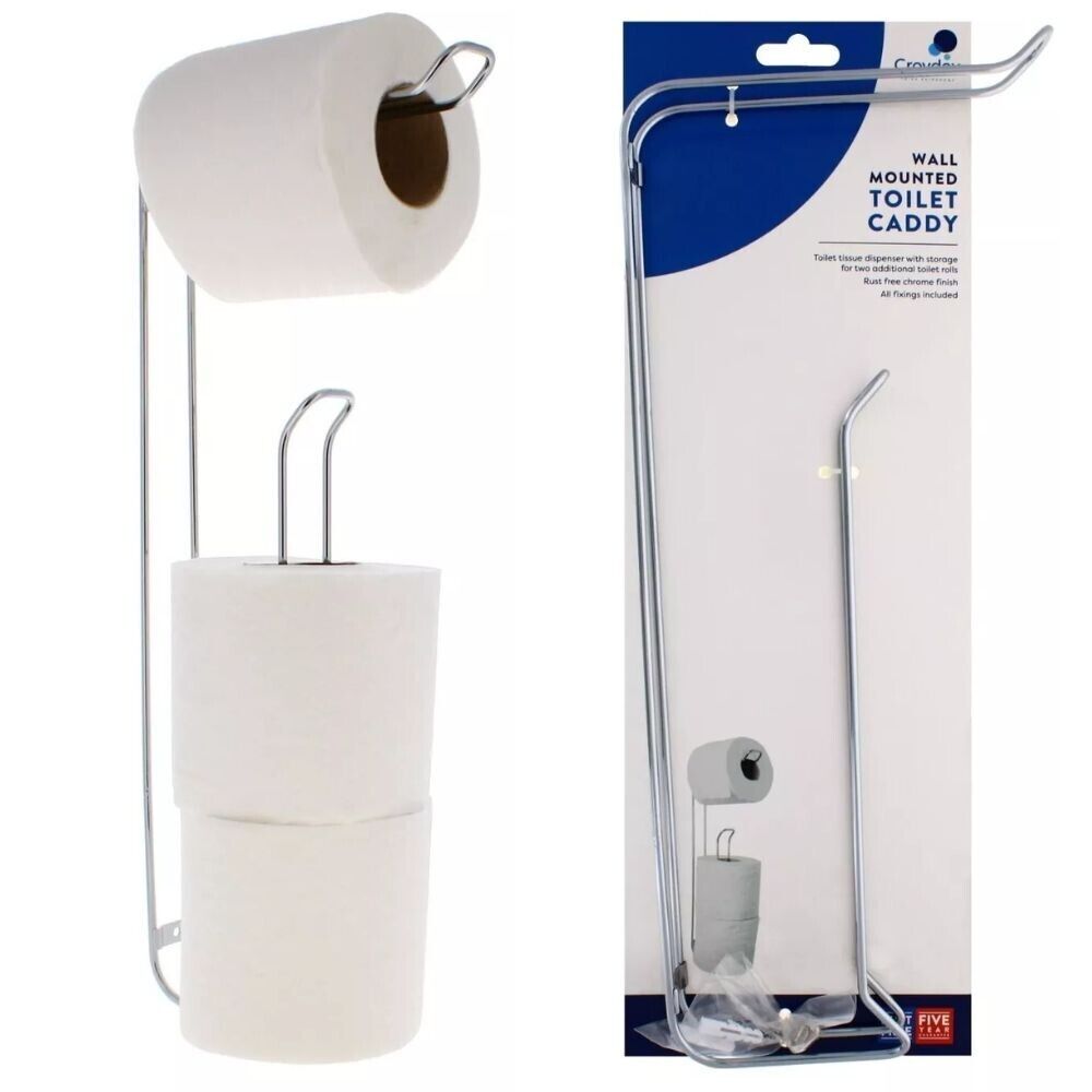 Croydex Toilet Roll Holder Wall Mounted Chrome Loo Tissue Caddy Paper Stand NEW