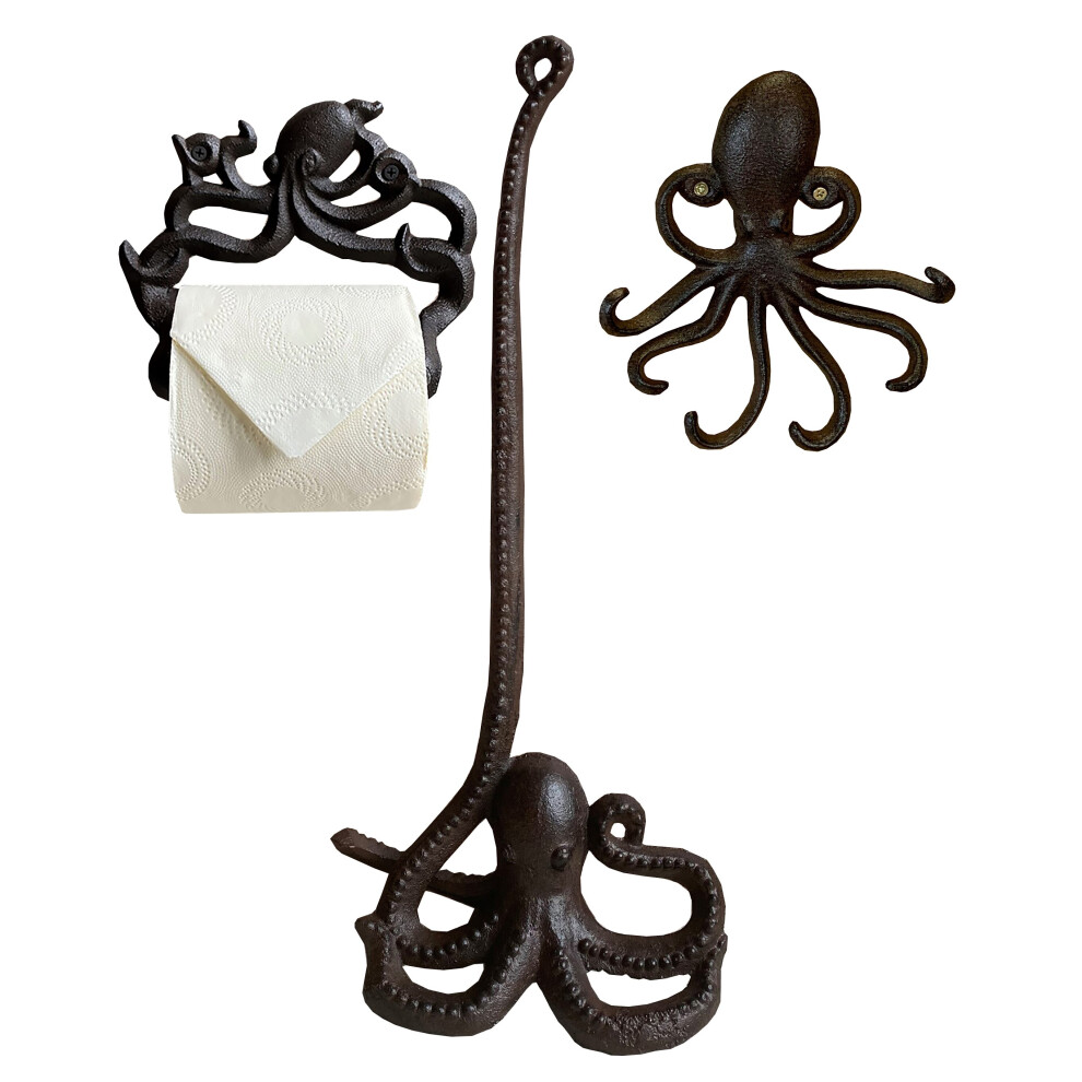 Cast Iron Octopus Wall Dispenser, Floor Loo Roll Holder & Wall Hook
