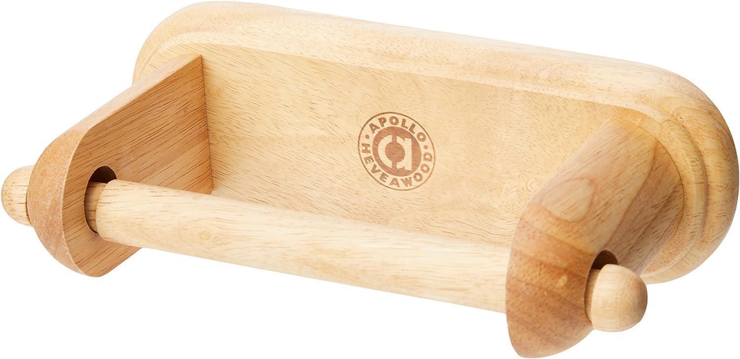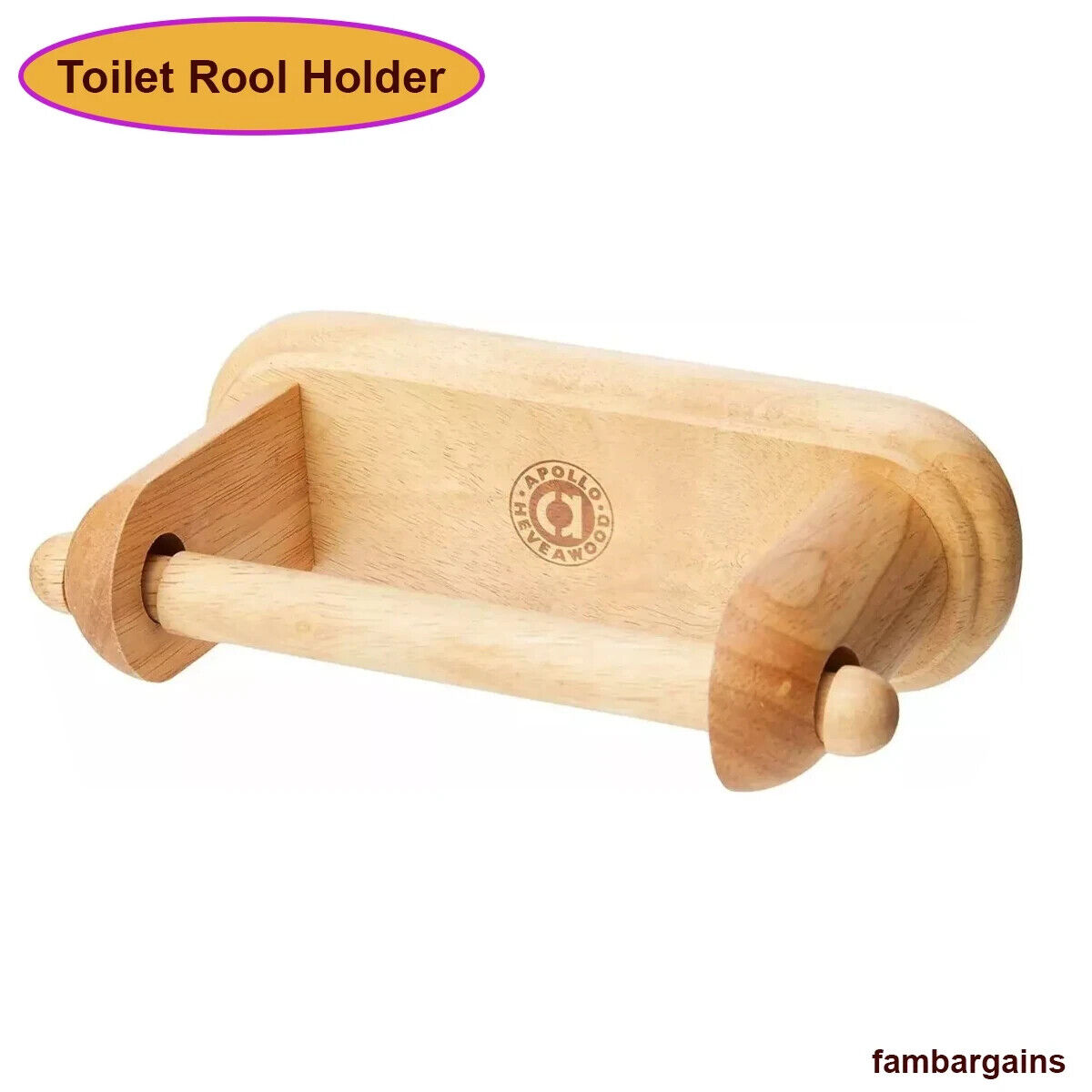 Apollo Hevea Wood Toilet Loo Roll Paper Holder Wooden Bathroom Wall Mounted New