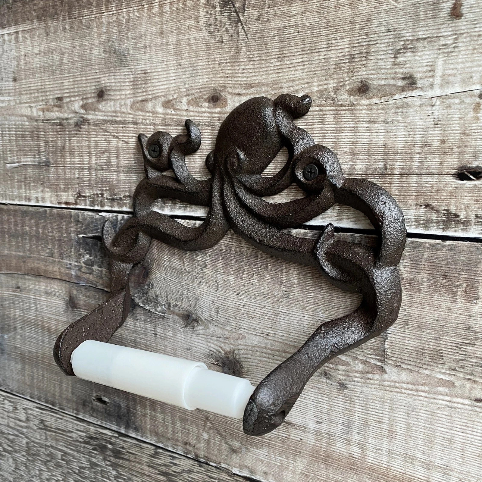 Cast Iron Octopus Wall-Mounted Loo Roll Holder â Vintage-Style, Sturdy Dispenser with Spring-Loaded Bar & Fixings