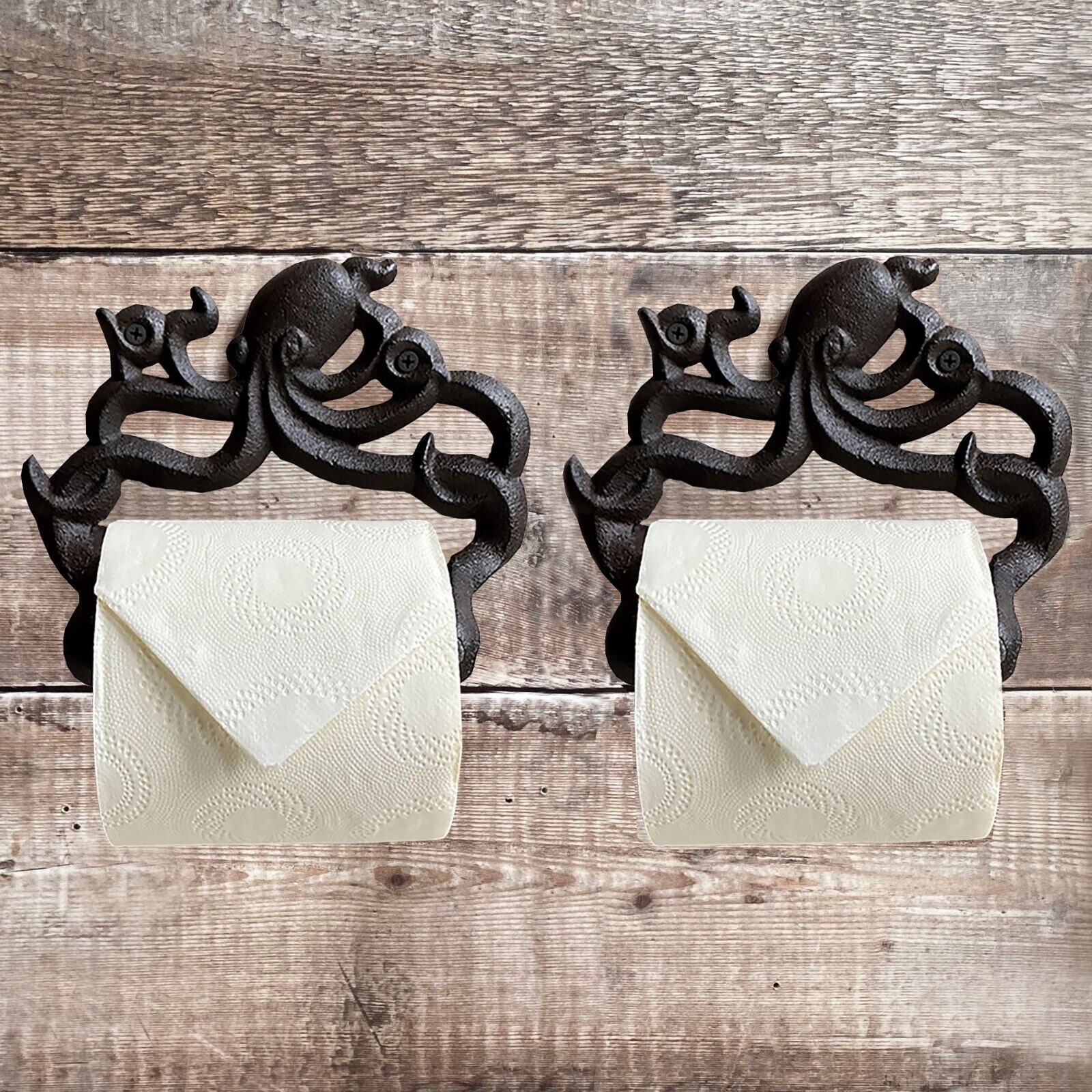 Wall Mounted Octopus Toilet Loo Roll Holder in Cast Iron (Set of 2)