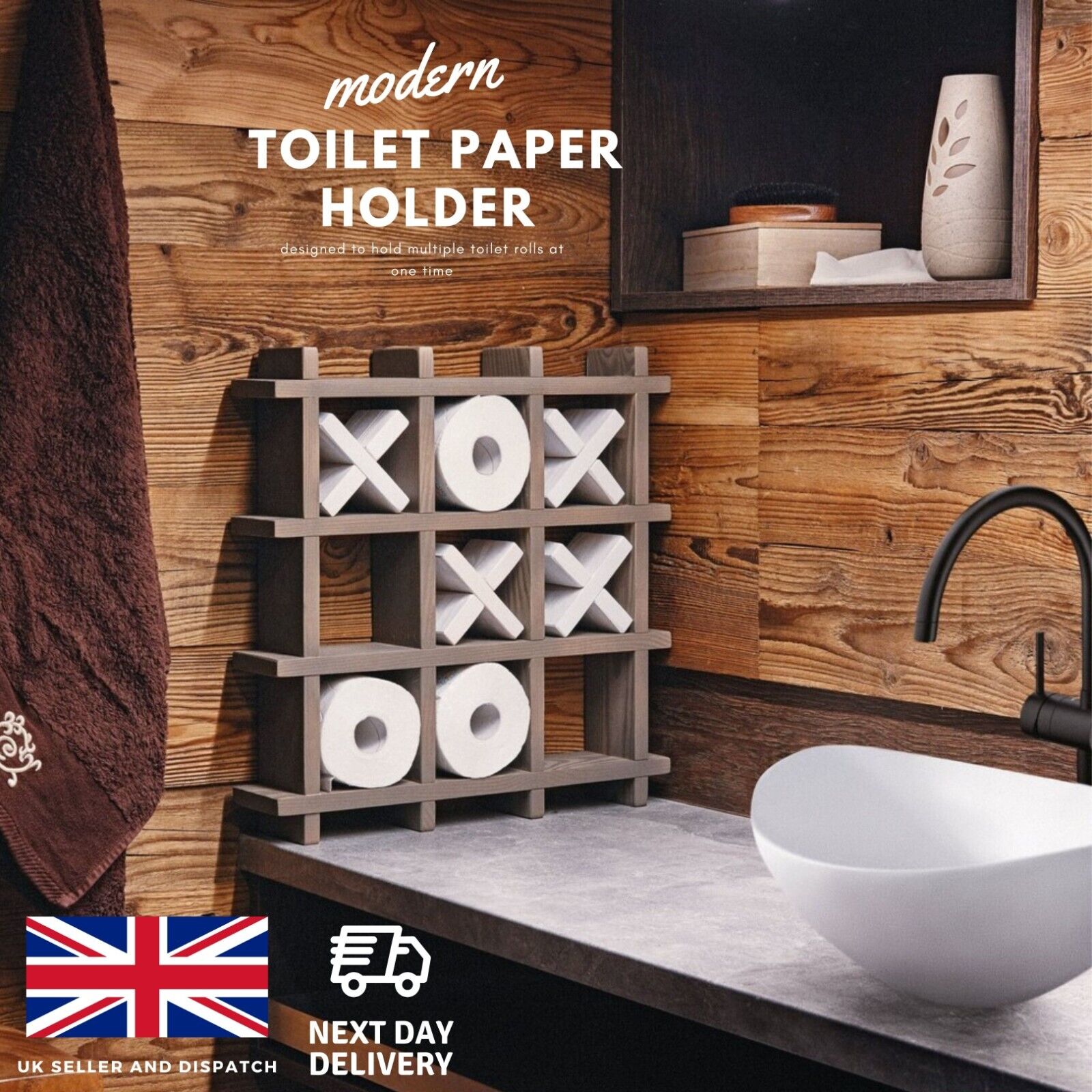 Tic Tac Toe Toilet Paper Holder - Xs And Os Wall Mounted Loo Roll Storage