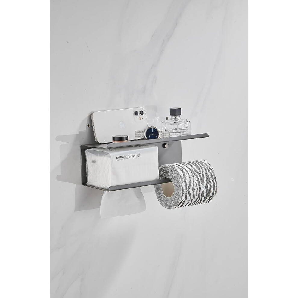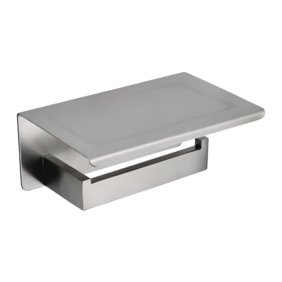 Wall Mounted Toilet Roll Holder - Stainless Steel Bathroom Loo Paper Holder with Phone Storage Shelf, Brushed Silver Finish