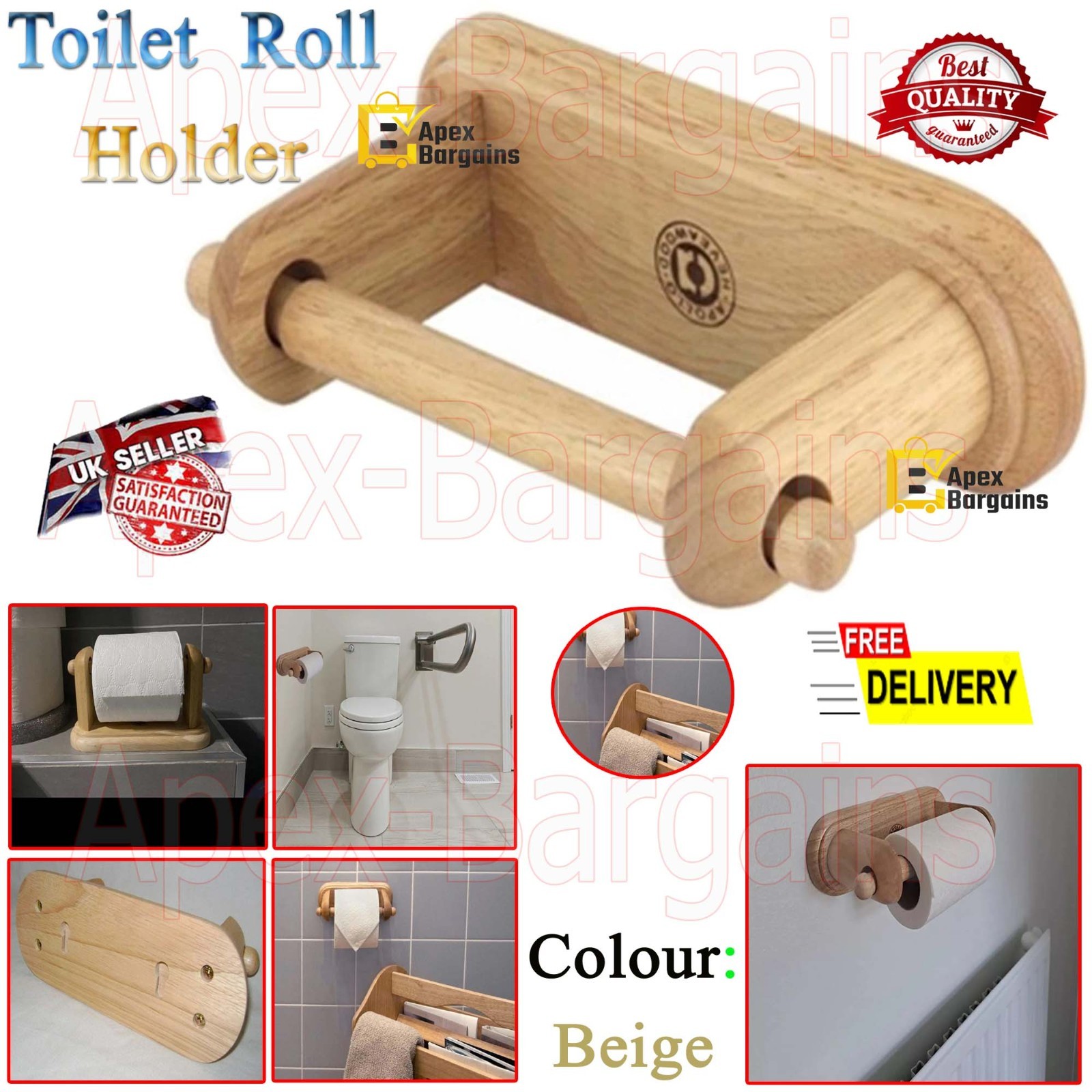 Wall Mounted Toilet Loo Roll Paper Holder Rubber Beech Wood Wooden Bathroom New