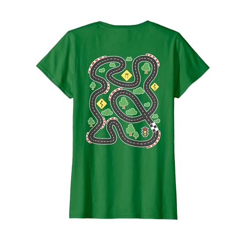 Playmat Train & Car Race Track Design On Back Side T-Shirt, Women, Kelly Green, X-Small