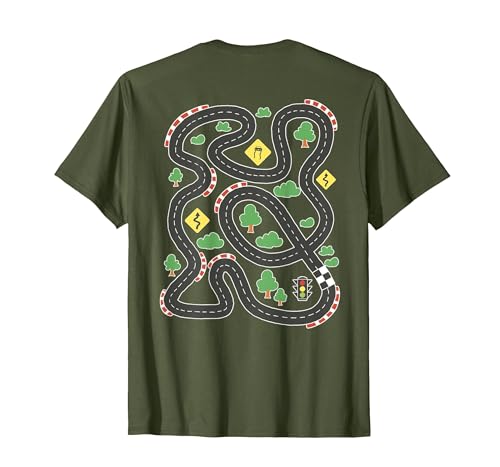 Playmat Train & Car Race Track Design On Back Side T-Shirt, Men, Olive Green, X-Large
